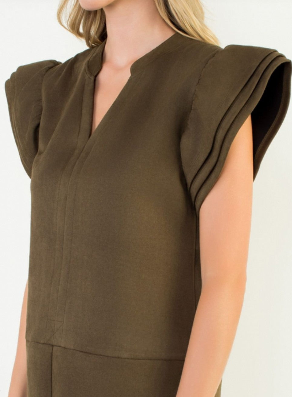 Olive Suede Flutter Sleeve Dress