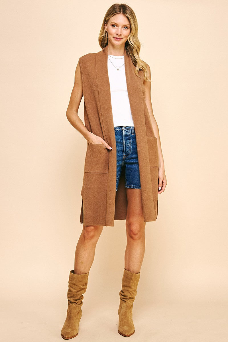 Camel Sleeveless Long Sweater Vest