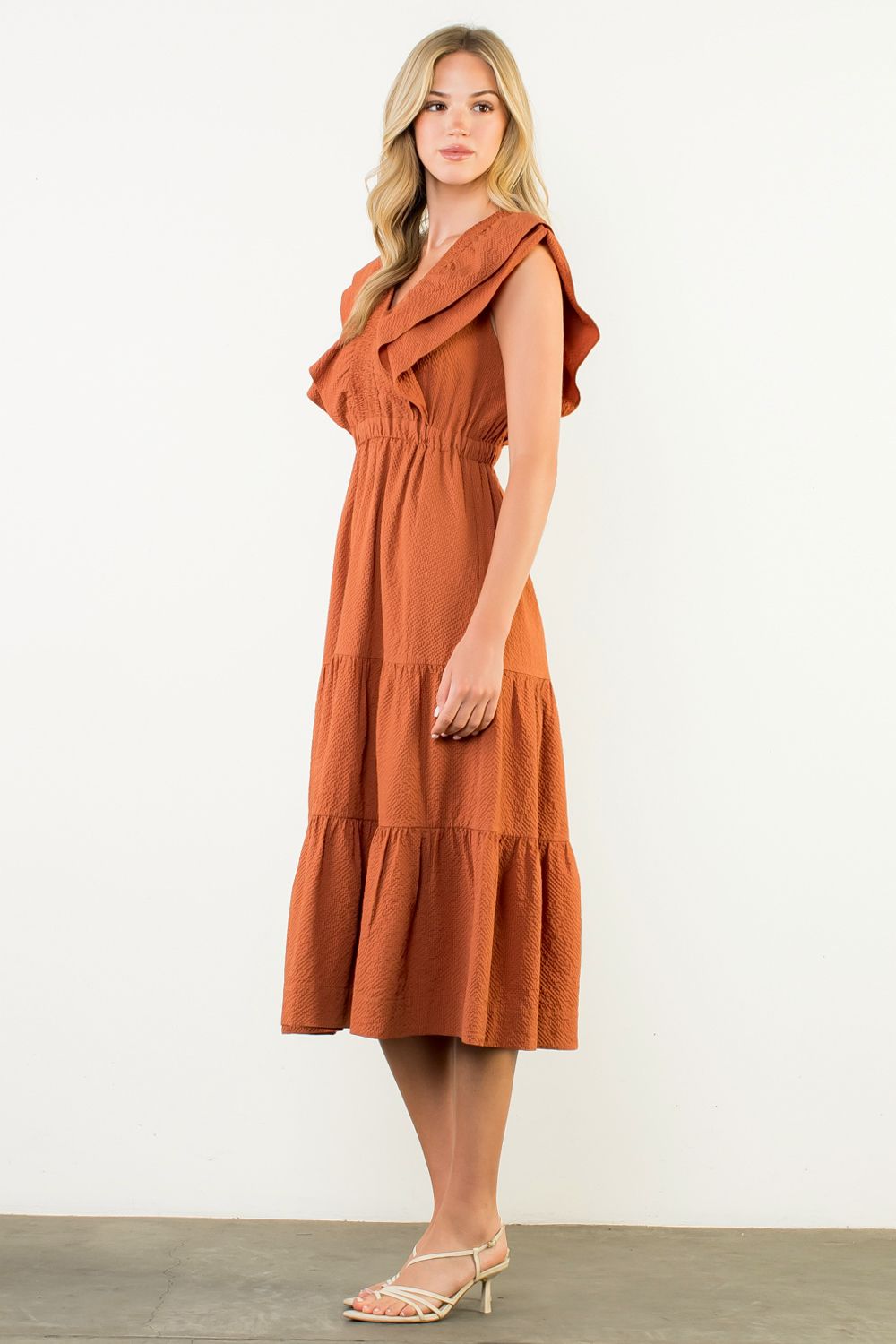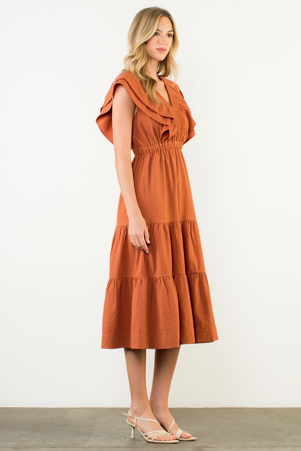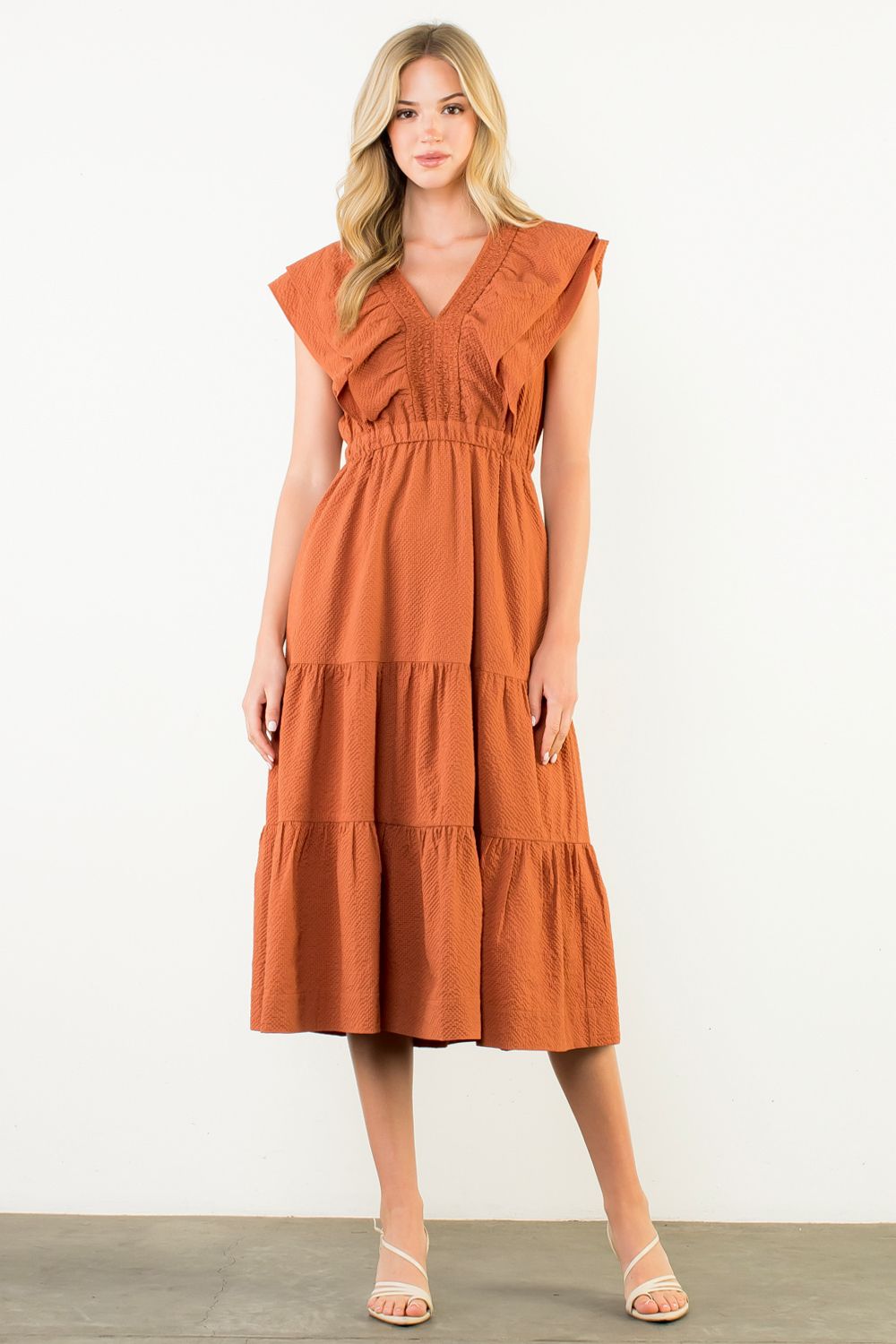Orange Tiered Midi Dress